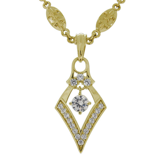18金 K18 ネックレス メンズ 天然石 ダイヤモンド 百合の紋章 ペンダント