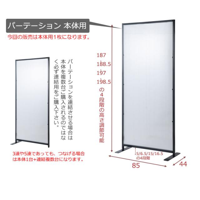 Niagara ナイアガラ パーテーションボード 本体用 (間仕切り スクリーン パーティション 国産 日本製 自立 ポリカーボネート うっすら オフィス 仕事 L字 L型 高さ調節 幅85cm ブラック おしゃれ おすすめ)