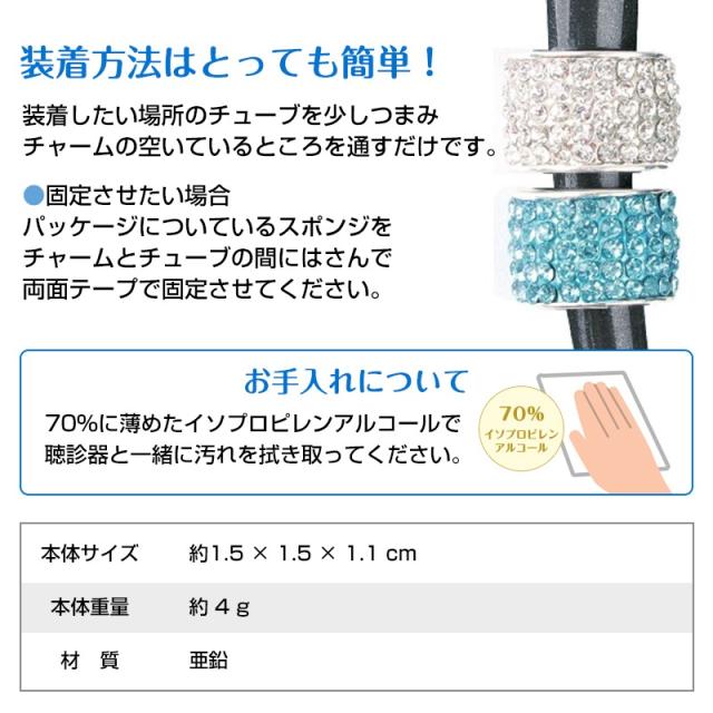 固定させたい場合は、パッケージに付いているスポンジをチャームとチューブの間に挟んで両面テープで固定させてください。