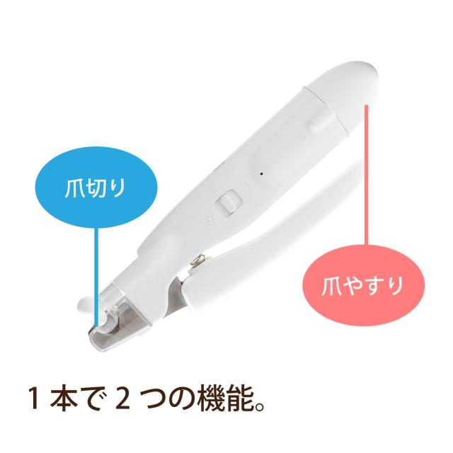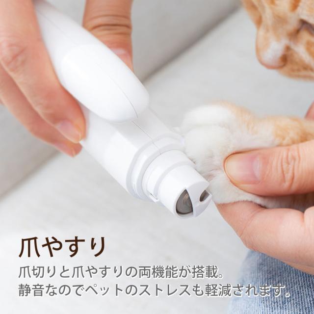 爪切りと爪やすりの2つの機能が搭載。静音なのでペットのストレスも軽減されます。