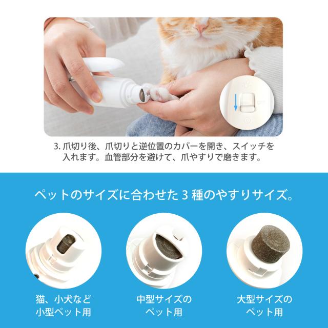 ペット用 爪切り 電動爪トリマー 犬用 電動爪やすり 電動ネイルヤスリ LEDライト付き USB充電式 爪きり いぬ ネコ 犬 猫 小型犬 中型犬 pet-n-clippers agesugi_sfp