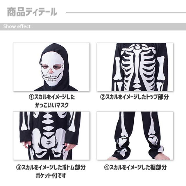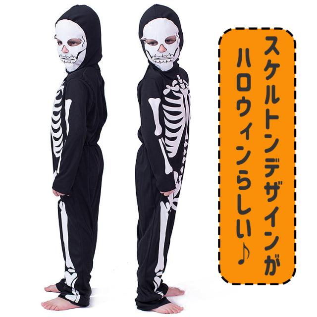 ハロウィン 衣装 子供 コスプレ 仮装 男の子 女の子 スカル スケルトン 骸骨 ドクロ 子ども キッズ こども ブラック 可愛い 男児 女児 なりきり ハロウィン衣装 コスチューム クリスマス パーティー 誕生日 プレゼント