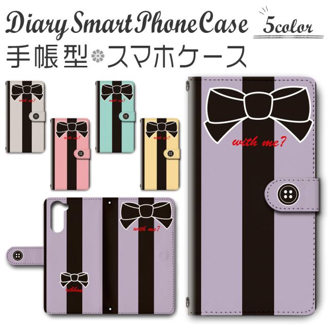 スマホケース スマホ ケース スマホカバー スマホ カバー 手帳型 OPPO Reno3 A 対応 送料無料 リボン ストライプ / dc-037