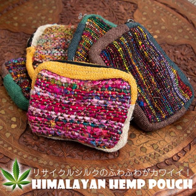 【5色展開】ヘンプとリサイクルシルクのポーチ / ヘンプ、ヘンプ ケース、ヘンプ ポーチ、タバコ バッグ 【インドとアジアンバッグ