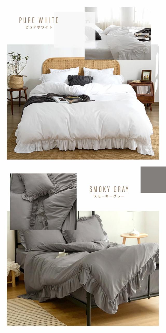 フリル 掛け布団カバー くすみカラー ダブル 掛けカバー 韓国 ピーチスキン しっとり やわらか オールシーズン 布団カバー 寝具 新生活 春夏 新生活応援 ピンク ホワイト 可愛い 姫系(代引不可)【送料無料】