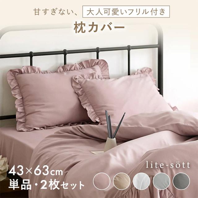 フリル枕カバー 43×63cm フリル付き かわいい おしゃれ ピローケース まくらカバー 寝具 韓国インテリア くすみカラー ロケース しっとり やわらか 韓国風 洗える 抗菌 姫系(代引不可)【メール便配送】【送料無料】