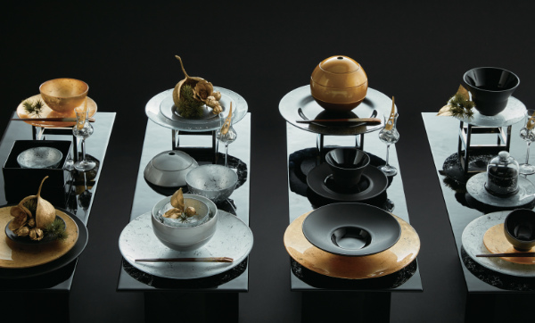 箔を貼ったような豪華なデザインで、きらびやかな存在感を放つ「オーブ」シリーズです。和にも洋にもマッチするスタイリッシュな装いは、パーティや晴れの席でも活躍。テーブルを華やかに演出します。