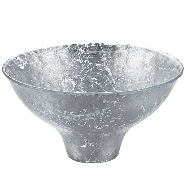 ●シルバーの輝きが目を引く、ガラス製カーブドボウル19.5cmです。