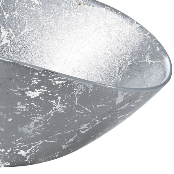 シルバーの輝きが目を引く、ガラス製カーブドボウル19.5cmです。揚げ物などの一品料理やサラダの盛り付けに使いやすくいサイズです。また程よく深さのある器なので、煮物などの汁気のあるお料理も安心して盛り付けられます。これ一枚で主役級の豪華なデザインが、盛り付ける料理をより美しく見せてくれます。
