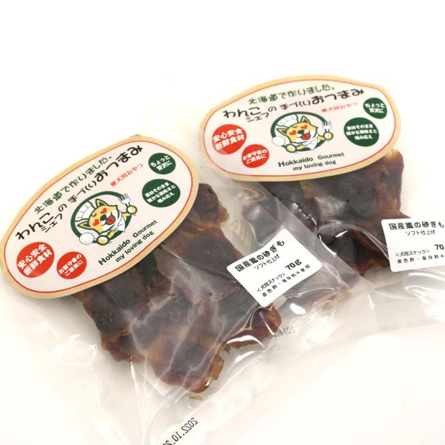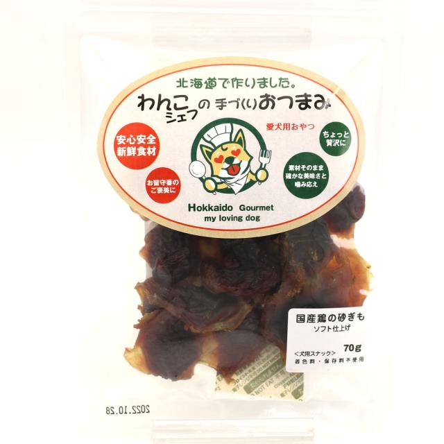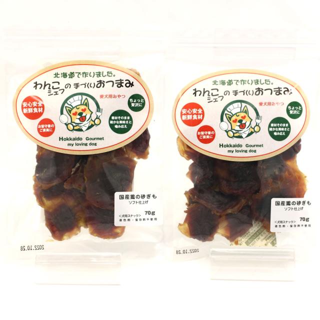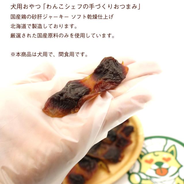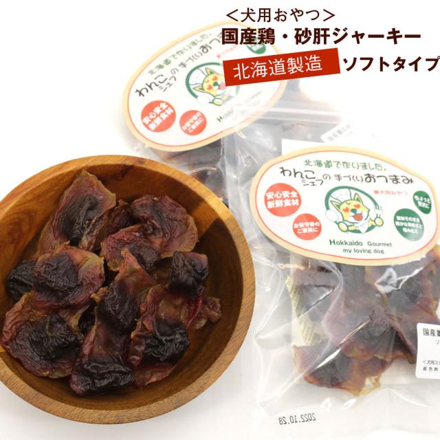 わんこシェフの手づくりおつまみ 北海道製造 犬用おやつ 砂肝ジャーキー ソフト 140g(70g×2) チャック袋入