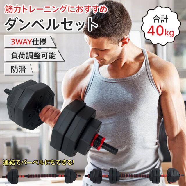 ダンベル 40kg セット バーベル 可変式 2個セット ワンタッチ ロック トレーニング ベンチ 鉄アレイ 筋トレ 健康器具 スポーツ ジム エクササイズ 運動 父の日 de134