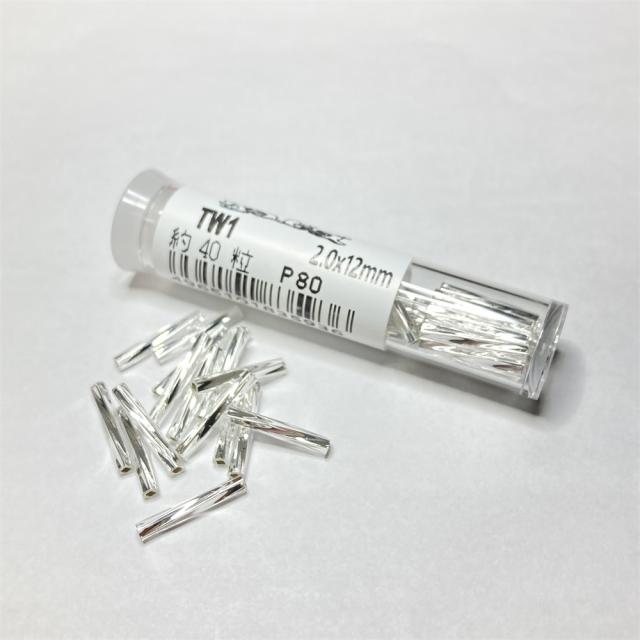 カラー番号:TW1-2.0X12mm カラー名:クリスタル銀引(シルバー) 素材:ガラス 加工の種類:スキ、ツヤ有り、シルバー サイズ:2.0X12mm 内容量: 約40粒(ケースビーズ約3g)