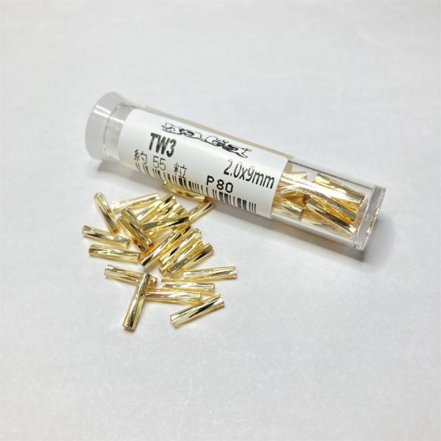 カラー番号:TW3-2.0X9.0mm カラー名:金茶銀引(ゴールド) 素材:ガラス 加工の種類:スキ、ツヤ有り、シルバー サイズ:2.0X9.0mm 内容量:約55粒(ケースビーズ約3g)