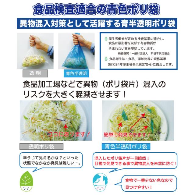 異物混入対策として使用できる青半透明です。