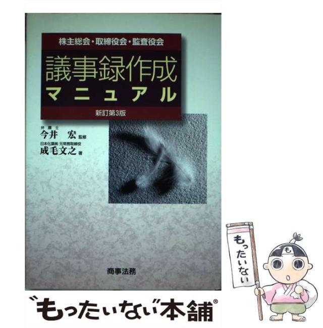 商品名:【中古】 株主総会・取締役会・監査役会議事録作成マニュアル 新訂第3版 / 今井宏、成毛文之 / 商事法務 [単行本]【メール便送料無料】