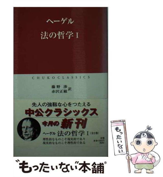 商品名:【中古】 法の哲学 1 (中公クラシックス) / ヘーゲル、藤野渉 赤沢正敏 / 中央公論新社 [新書]【メール便送料無料】