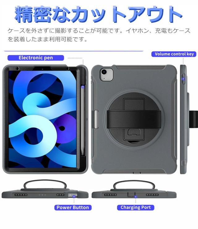 iPad Air4 ケース iPad air 10.9インチ ケース 2020 iPad Air4 カバー 耐衝撃 スタンド機能 背面カバー iPad air 2020 ケース オシャレ PC TPU シリコン 落下防止 Apple Pencil収納 迷彩 タブレット アイパッド エアー 第4世代 256 ペンシル 手持ちバンド 片手持ち 落下保護