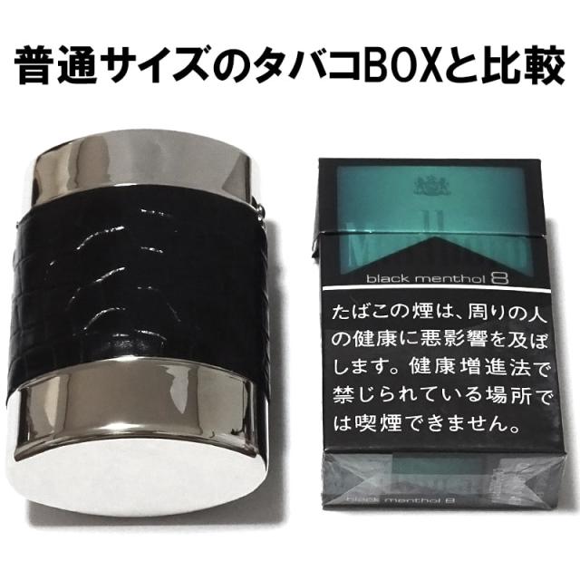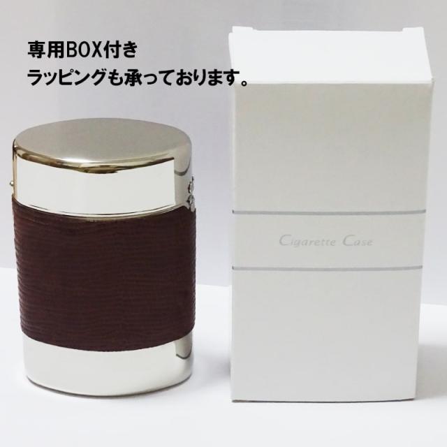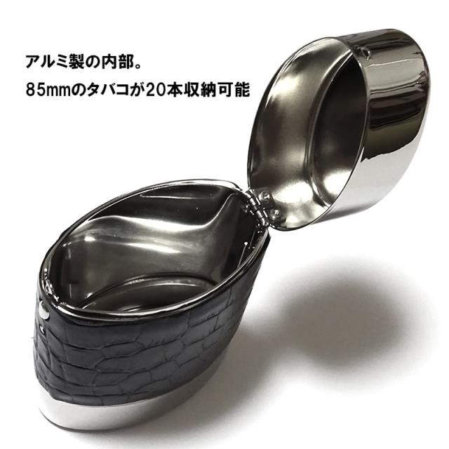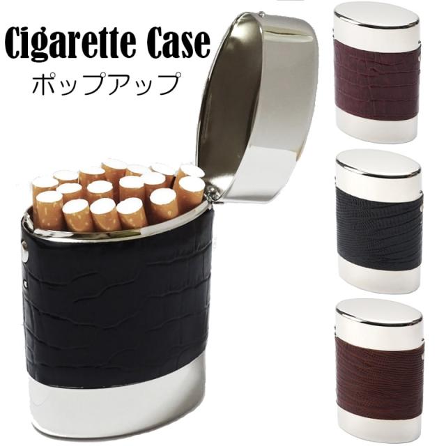 シガレットケース おしゃれ タバコケース ポップアップ クロコダイル リザード 本革巻き 軽量 85mm 20本 収納 手巻きタバコにも ブラック ブラウン お洒落 潰れない プレゼント ギフト