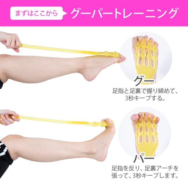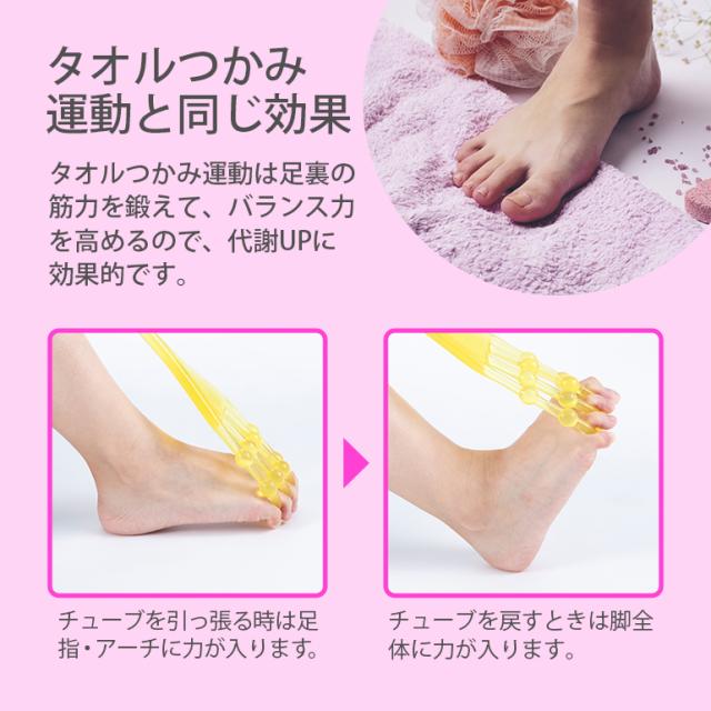 ・足指の間ににチューブを挟んで伸縮を繰り返すだけで足のエクササイズになります。