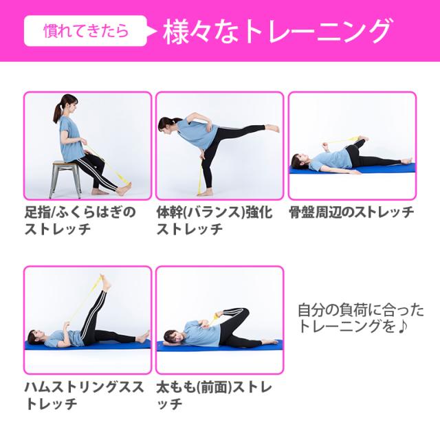 ・チューブを使って足の気になる部分を簡単にトレーニングできます。