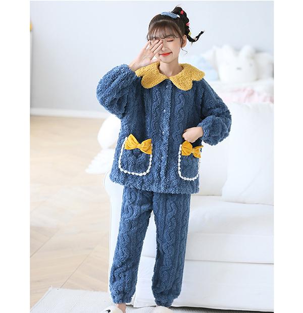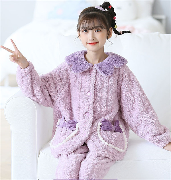 ルームウェア キッズパジャマ 冬 長袖 上下セット もこもこ 子供 女の子 モコモコ 寝巻き ナイトウェア 冬 かわいい おしゃれ 長袖 オシャレ 子ども ふわふわ 裏起毛 可愛い 韓国 部屋着 誕生日 プレゼント 暖かい ロングパンツ パープル 紫