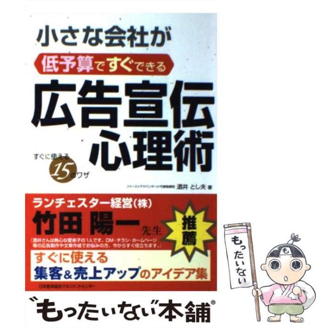 商品名:【中古】 小さな会社が低予算ですぐできる広告宣伝心理術 すぐに使える15のワザ / 酒井とし夫 / 日本能率協会マネジメントセンター [単行本(ソフトカバー)]【メール便送料無料】