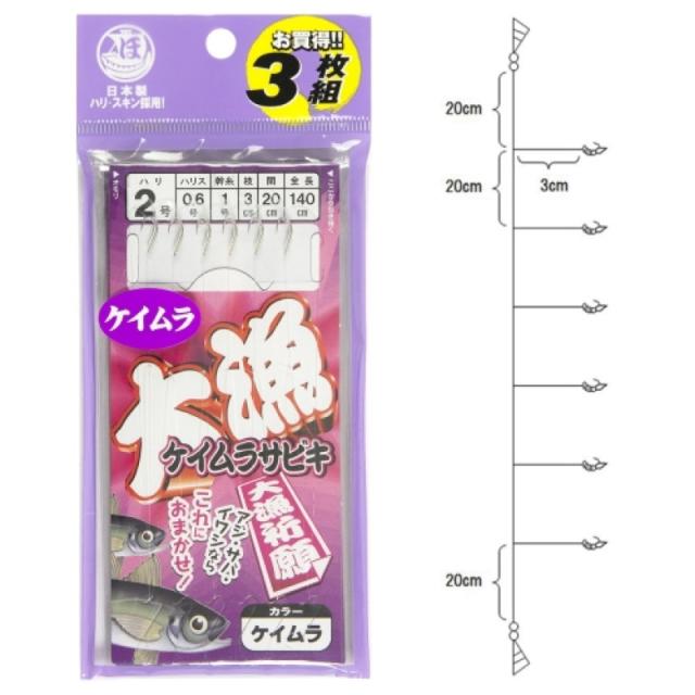 - 大漁ケイムラサビキ 3枚組 針2号-ハリス0.6号