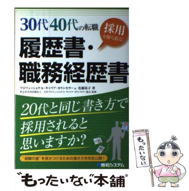 商品名:【中古】 30代40代の転職採用を勝ち取る!履歴書・職務経歴書 20代と同じ書き方で採用されると思いますか? ”経験の差”を見せつけるための書き方を完全 / / [単行本]【メール便送料無料】