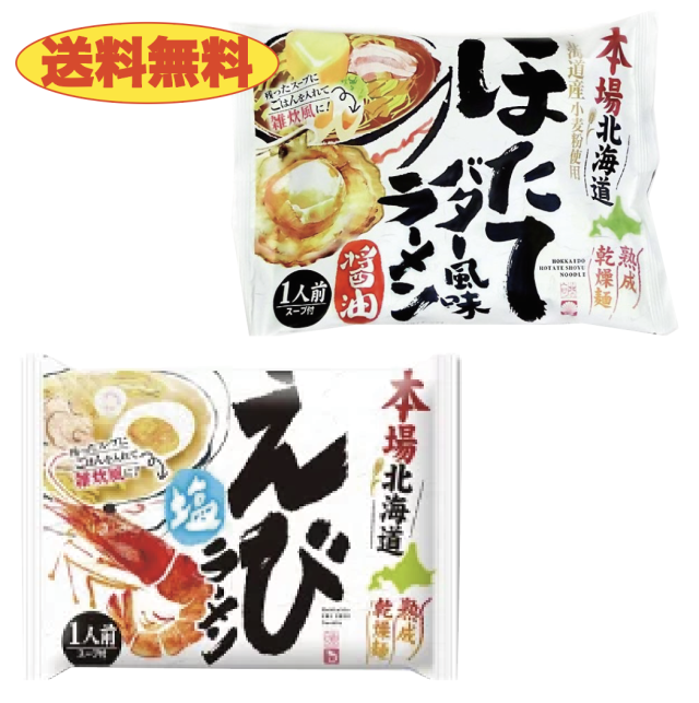 ★送料無料★ほたてバターラーメン&えび塩ラーメン1袋 計2袋 ポイント消化 お得 麺 乾燥めん