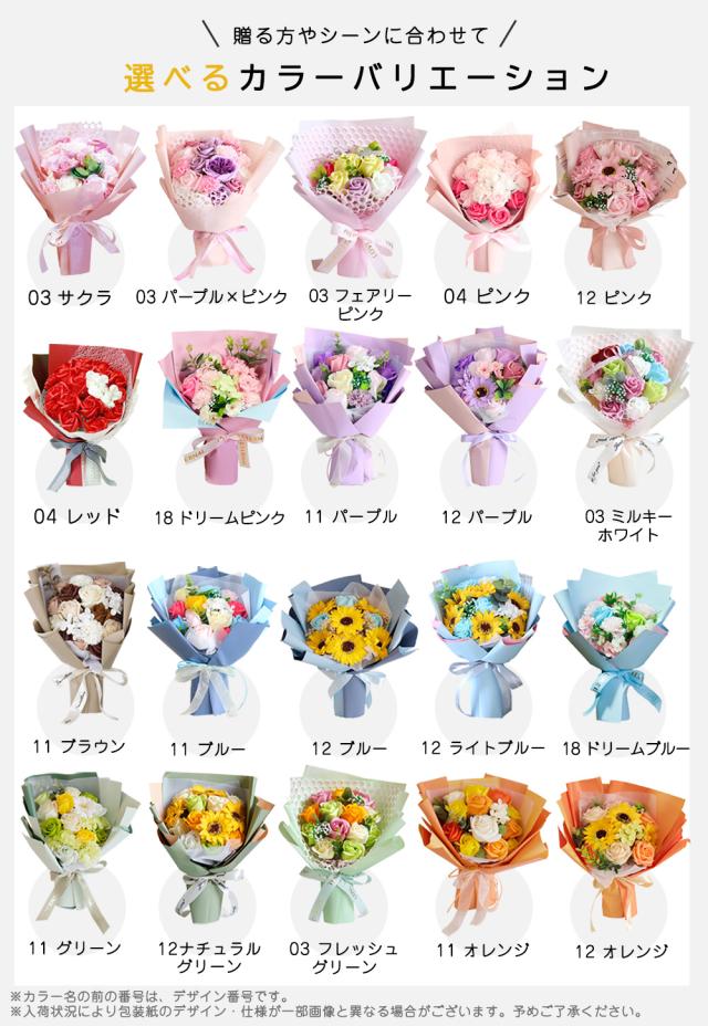 ※ソープフラワーの花同士がくっついているため薄い色の花に色移りしていることがあります。予めご了承ください。