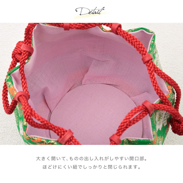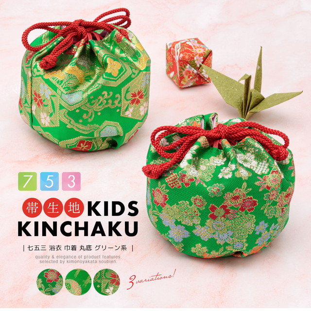 七五三 巾着 和柄 巾着バッグ 女の子 帯生地 単品 緑 桜 花丸 立波 亀甲 子供 こども 和装 着物 メール便 送料無料