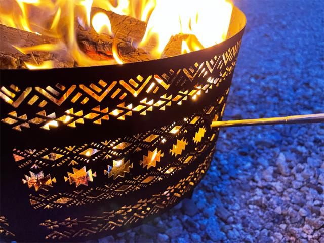 焚き火を楽しむのはもちろんのこと、焚き火台から現れる赤く染まったナバホ柄を鑑賞することもできるおしゃれな焚き火台に仕上がりました。