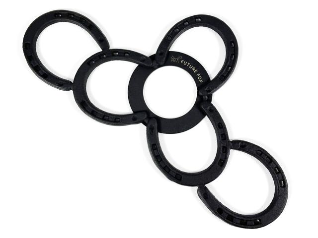 FUTURE FOXオリジナルの五徳が付属。無骨さを象徴する蹄鉄を使用しており、馬に乗り大地を駆け巡ったであろうインディアンをイメージして蹄鉄の五徳に仕上げました。 五徳を全面ではなく焚き火台の片側に寄るようにしたことで、調理時に薪の調節がしやすくなっています。 厚さは約7mmでかなり頑丈でケトル、スキレットなどの様々な調理器具をのせることが可能です。重さはありますが、気にならないくらいの完成度に仕上げました。