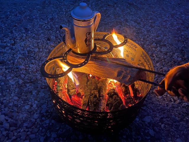 ナバホ柄焚き火台を使用することで燃え上がる炎を楽しむと同時にナバホ柄が赤く染まるコントラストを楽しむことができます。