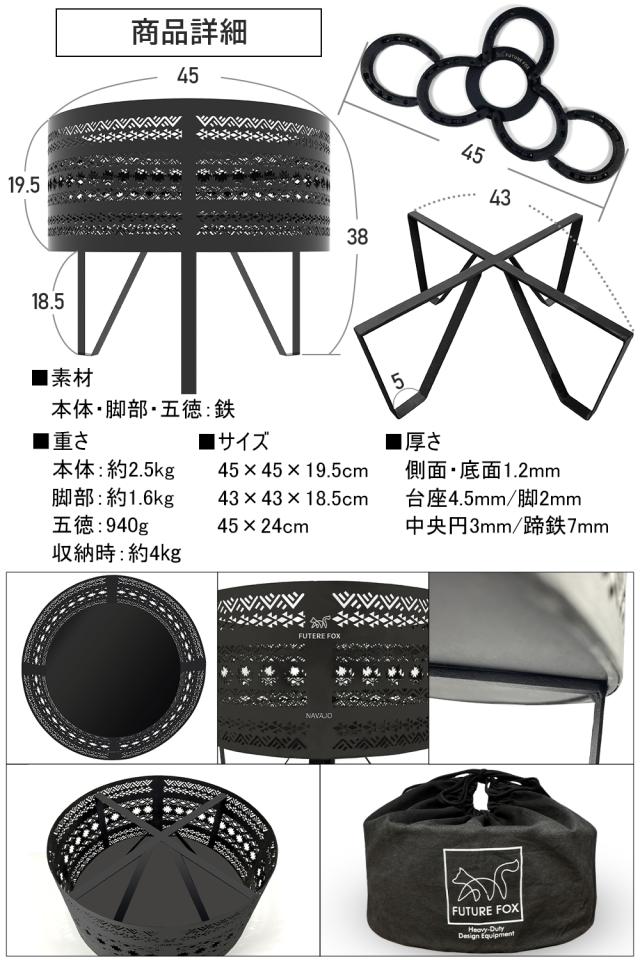 FUTURE FOX 焚き火台 ナバホ柄 焚火台 たき火台 焚き火 たき火 45cm×45cm×19.5cm 【南信州発アウトドアブランド】