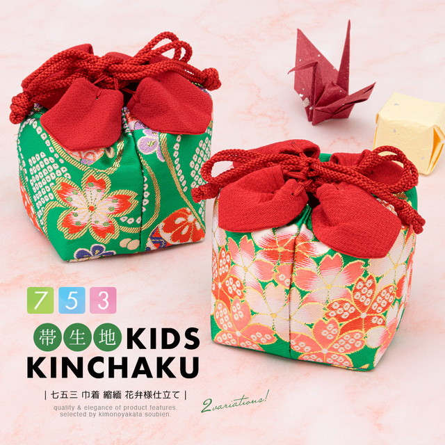 七五三 巾着 和柄 巾着バッグ 女の子 帯生地 単品 赤 緑 ちりめん 桜 手鞠 子供 こども 和装 着物 メール便 送料無料