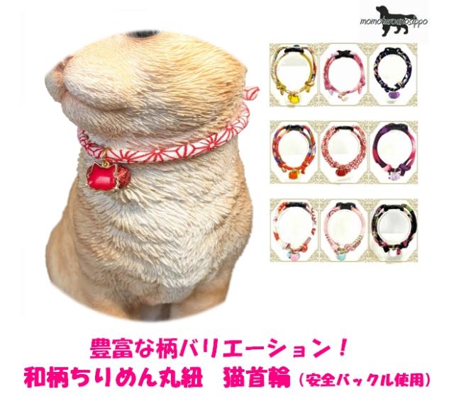 ちりめん丸紐 猫首輪 猫 首輪 ちりめん和柄 猫姫首輪 鈴 1番〜9番(日本製)送料無料(ポスト投函便)