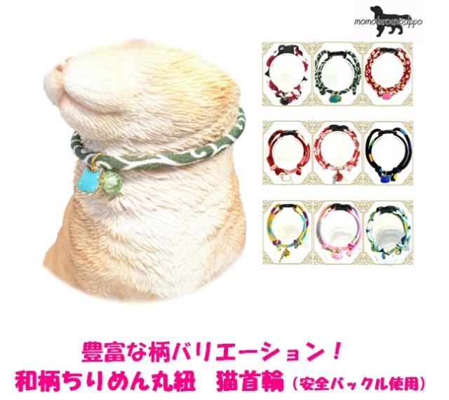 ちりめん丸紐 猫首輪 猫 首輪 ちりめん和柄 猫姫首輪 鈴 10番〜18番(日本製)送料無料(ポスト投函便)