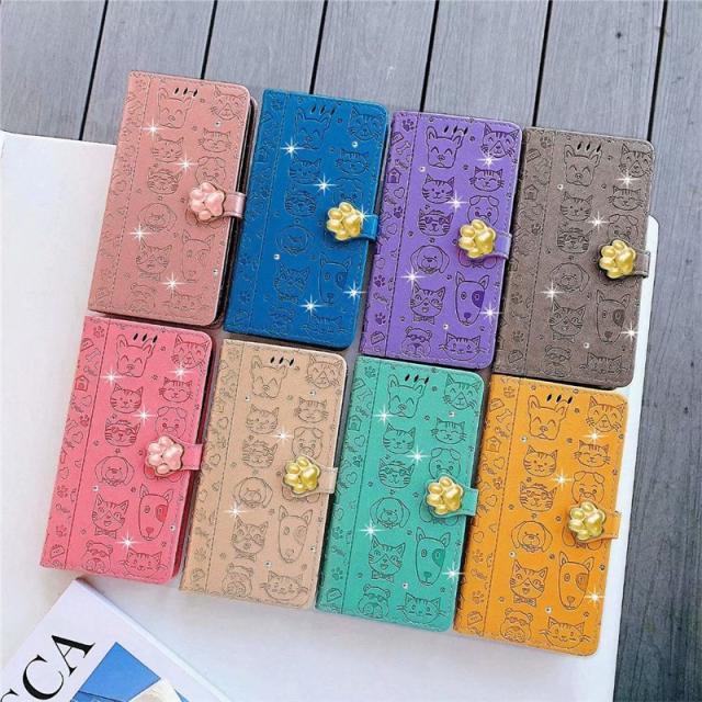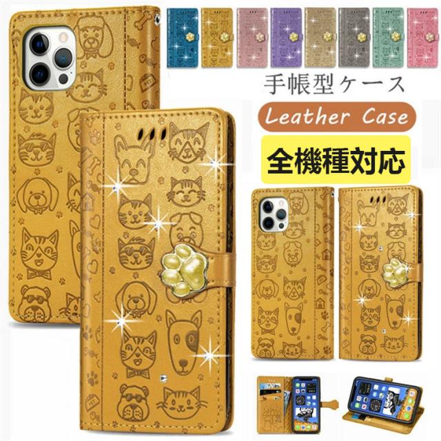○キュートなネコ&イヌ絵柄手帳型ケース全8色!。