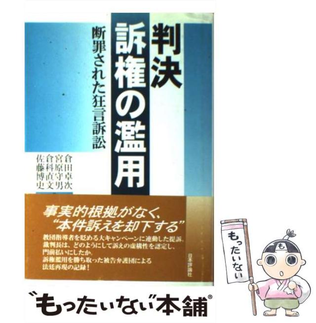 商品名:【中古】 判決 訴権の濫用 断罪された狂言訴訟 / 倉田 卓次 / 日本評論社 [単行本]【メール便送料無料】