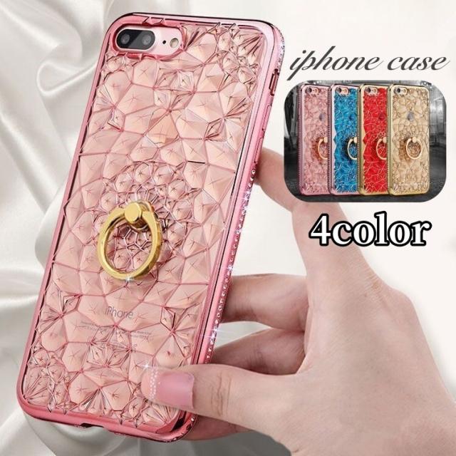 スマートフォンケース iPhoneケース リング付き スマホケース スマホカバー 保護 傷防止 キラキラ ラインストーン おしゃ