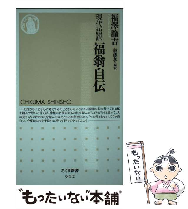 商品名:【中古】 福翁自伝 現代語訳 (ちくま新書 912) / 福澤諭吉、齋藤孝 / 筑摩書房 [新書]【メール便送料無料】