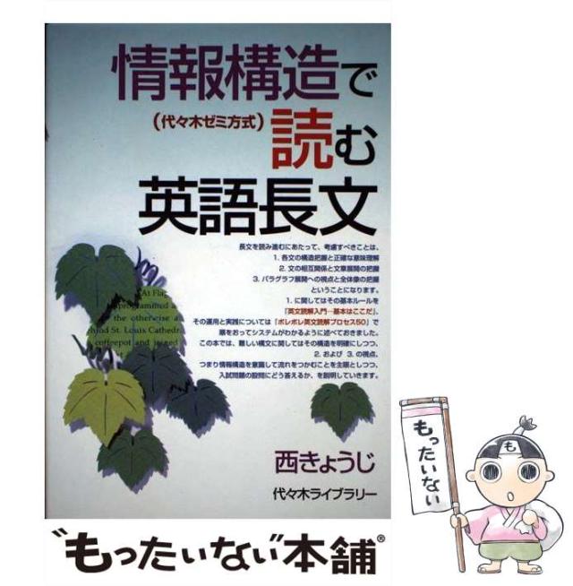 商品名:【中古】 情報構造で読む英語長文 代々木ゼミ方式 / 西 きょうじ / 代々木ライブラリー [単行本]【メール便送料無料】