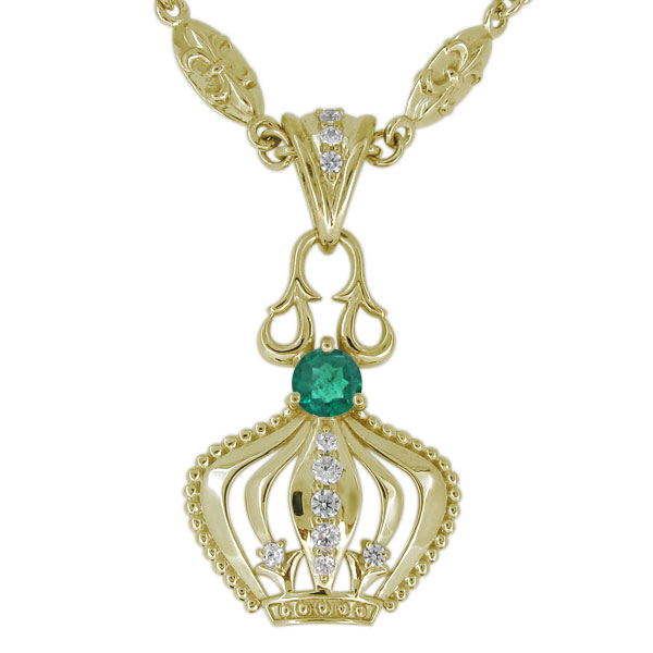 エメラルド ネックレス メンズ 王冠 クラウン ペンダント 5月誕生石 10金