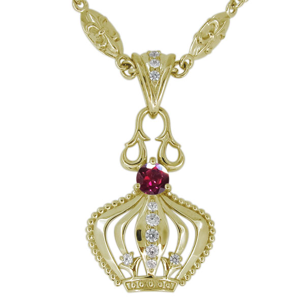 メンズ ネックレス 18金 クラウン 王冠 天然石 ルビー メンズペンダント