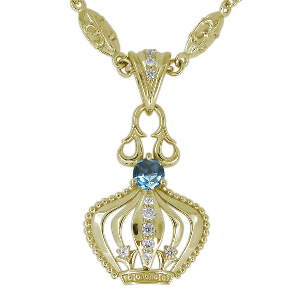 ブルートパーズ ネックレス メンズ 王冠 クラウン ペンダント 11月誕生石 10金