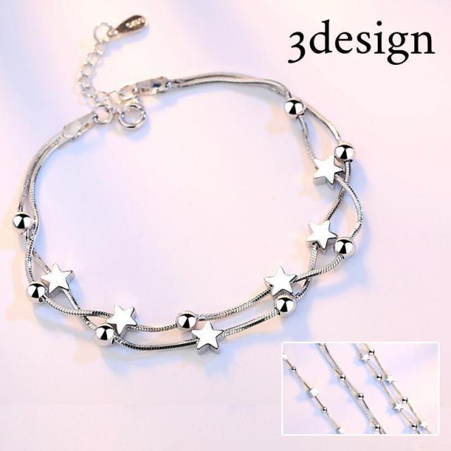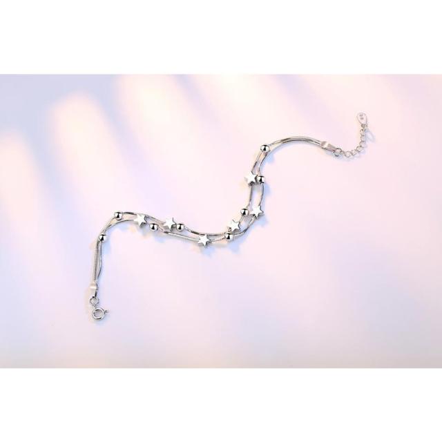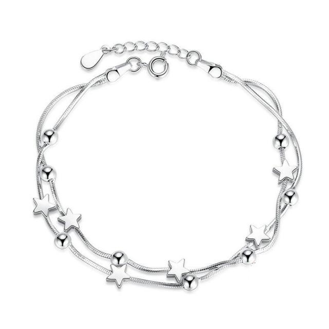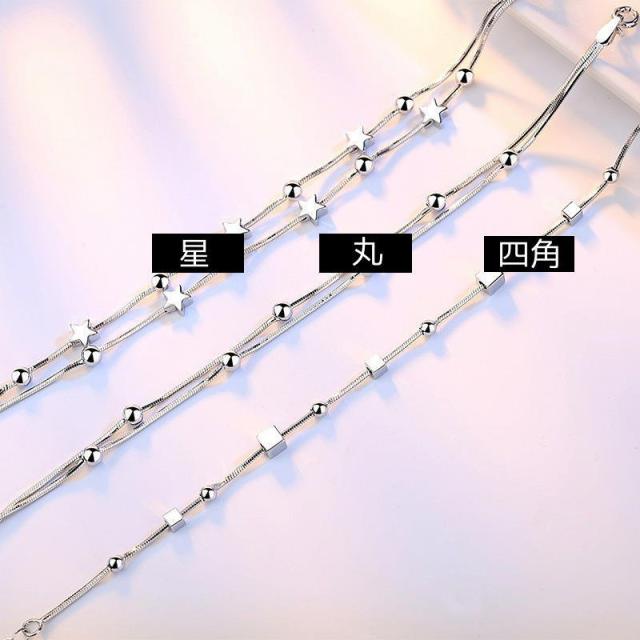 ブレスレット レディース アクセサリー 星 スター 丸 四角 ボール スクエア シルバー925 チェーン 細身 2連 重ね付け風 かわいい シンプル