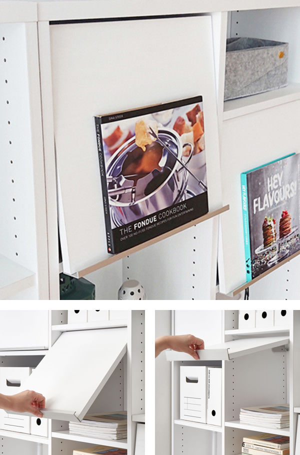 お気に入りの本や雑誌をディスプレイして、自分だけのレイアウトを楽しむことができます。隠しておきたい物は扉の中にスッキリと収納できるので、来客時にも便利です。