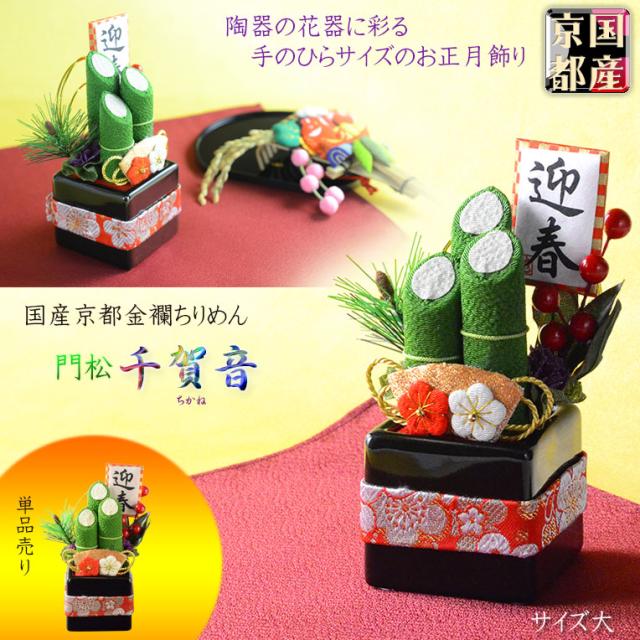 国産・お正月飾り【国産京都 手造り迎春お飾り:門松 千加音(ちかね)単品売り 黒陶器 サイズ大】 新年 新春 正月
