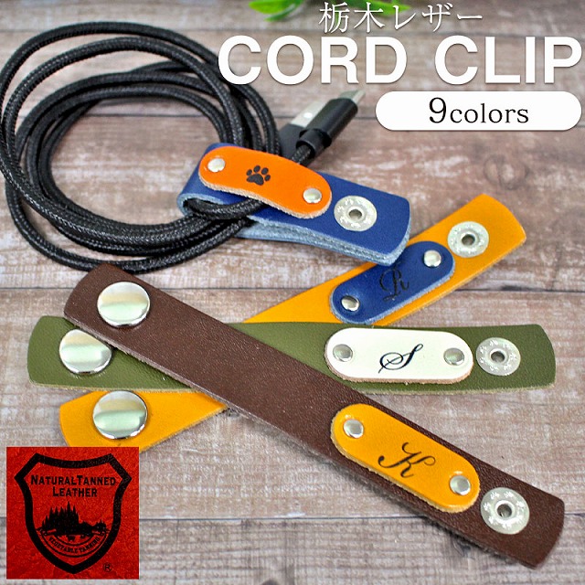 コードクリップ イニシャル マーク 栃木レザー コードホルダー 充電コード収納 イヤホンコード収納 イヤホンホルダー 便利グッズ 本革 送料無料 即納